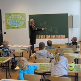 Eelkool harjutab lapsi koolitundidega.